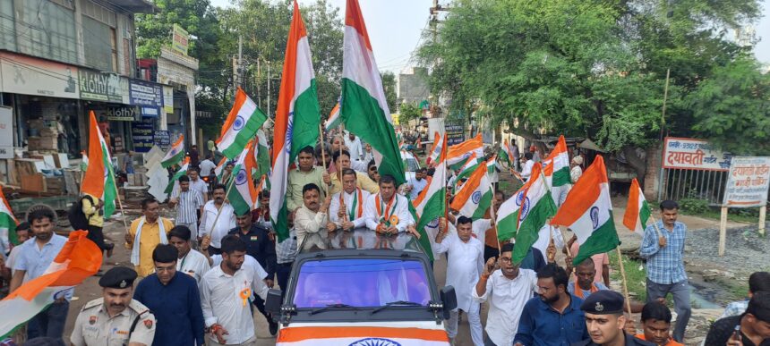 उन्होंने कहा कि यह समय देश की स्वतंत्रता का जश्न मनाने का है लेकिन हमें स्वतंत्रता प्रदान करने वाले अमर शहीदों के शौर्य और उनके बलिदान को भी याद रखना होगा। हमें देश की आजादी को अक्षुण्ण रखने वाले हमारे सैनिकों के शौर्य को भी याद रखना होगा। मंत्री राजेश नागर के नेतृत्व में आगरा चौक से लेकर पल्ला पुल के नजदीक उनके कार्यालय तक विशाल तिरंगा यात्रा निकाली गई जिसमें हजारों की संख्या में भाजपा कार्यकर्ताओं एवं स्थानीय नागरिकों ने हाथों में तिरंगे झंडे लेकर भागीदारी की। इस दौरान देशभक्ति गीतों की धुनों पर युवाओं को झूमते देखा गया और उनका जोश हाई था।