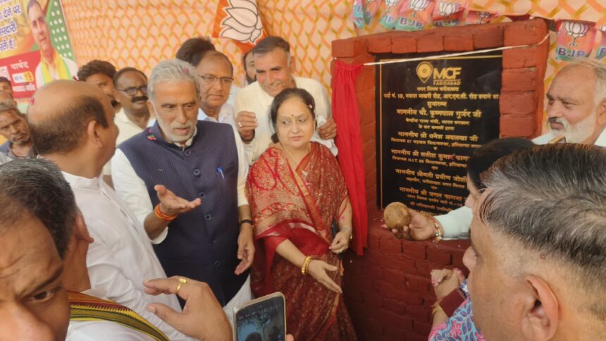 Star khabre, Faridabad; 13th July : भारत सरकार में केंद्रीय सहकारिता राज्य मंत्री कृष्ण पाल गुर्जर ने आज रविवार को एनआईटी विधानसभा क्षेत्र में लगभग 08 करोड़ रुपये की लागत से शुरू होने वाले विभिन्न विकास कार्यों का स्थानीय लोगों से नारियल तुड़वाकर विधिवत तरीके से शिलान्यास किया। इस मौके पर उनके साथ महापौर प्रवीण जोशी, बड़खल विधायक धनेश अदलखा और एनआईटी विधायक सतीश फागना भी मौजूद रहे।