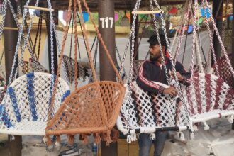 मेला परिसर में पर्यटकों को खूब लुभा रहे कुर्सीनुमा झूले